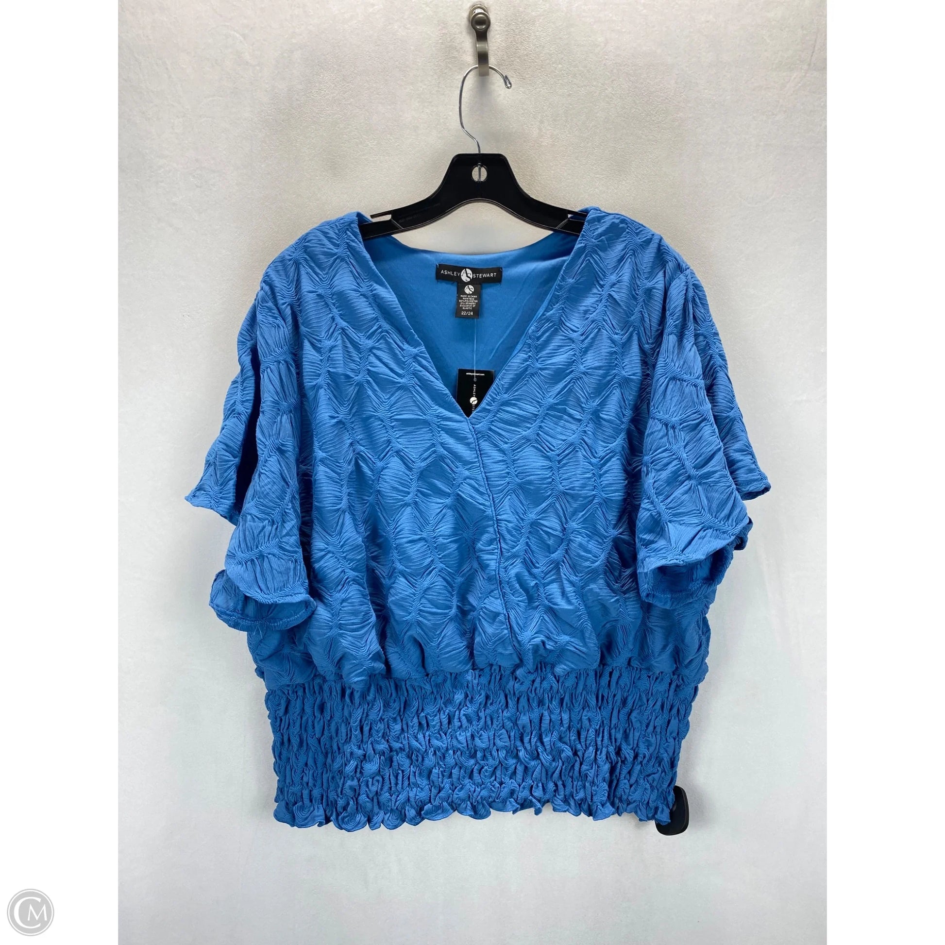 Blouse Short Sleeve By Ashley Stewart In Blue, Size: 22