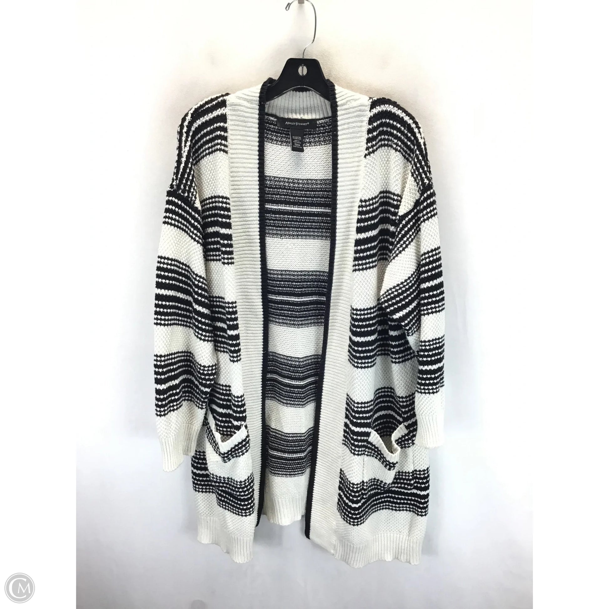Sweater Cardigan By Ashley Stewart In Black & White, Size: 2x