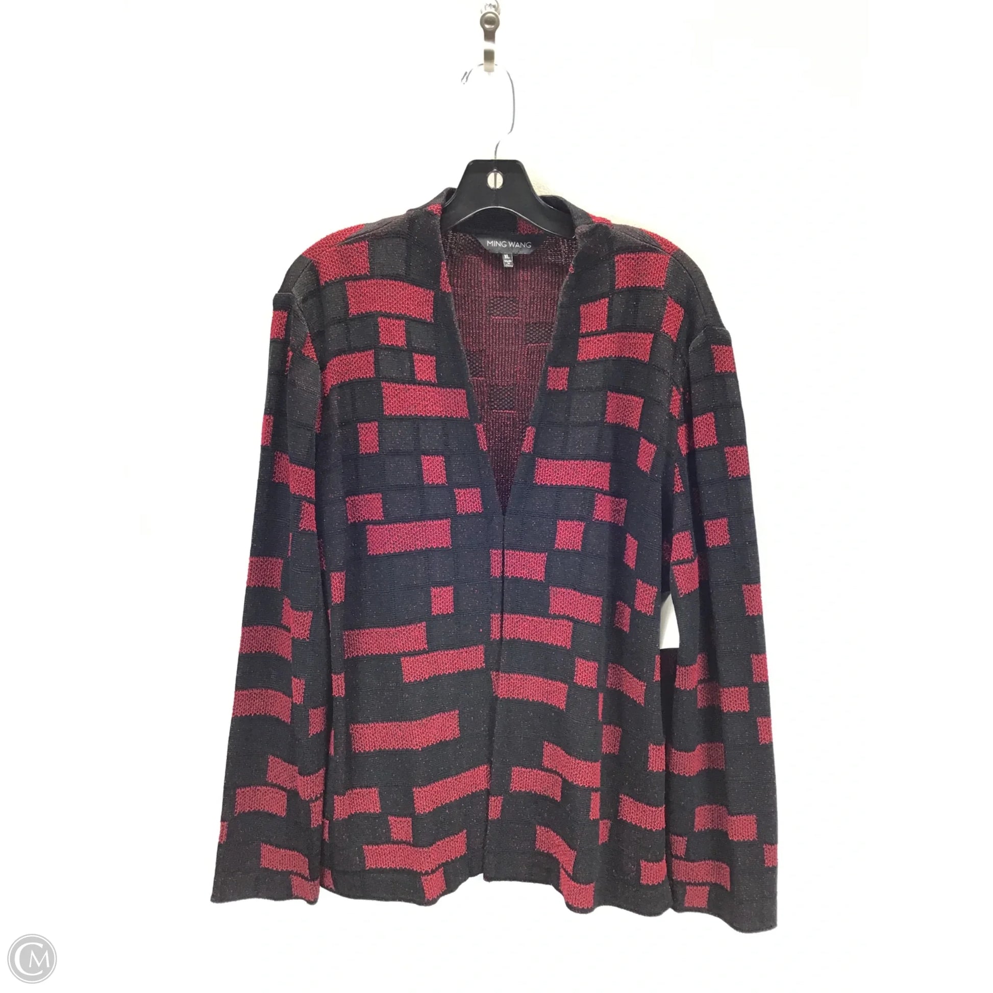 Sweater Cardigan By Ming Wang In Black & Red, Size: Xl