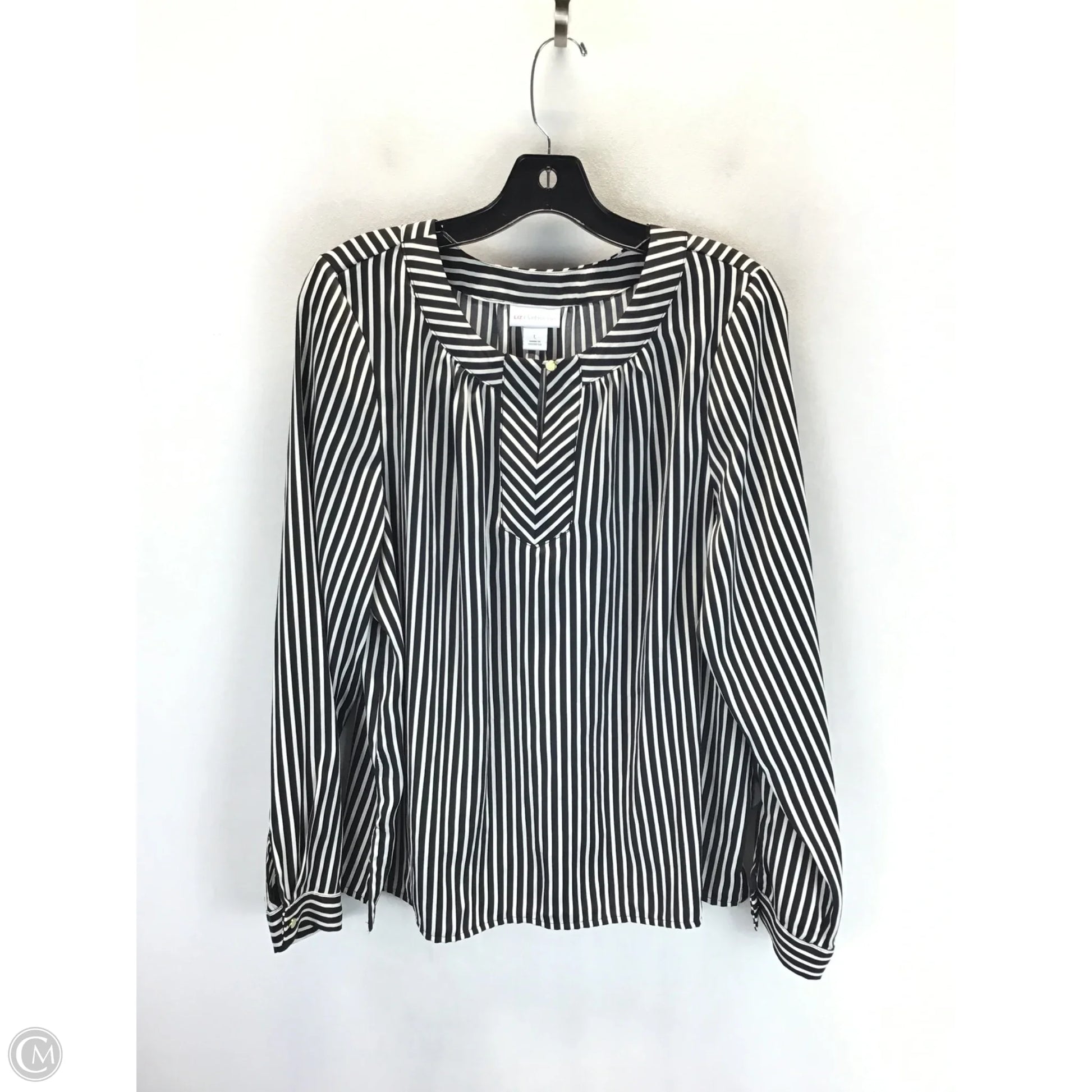 Top Long Sleeve By Liz Claiborne In Black & White, Size: L
