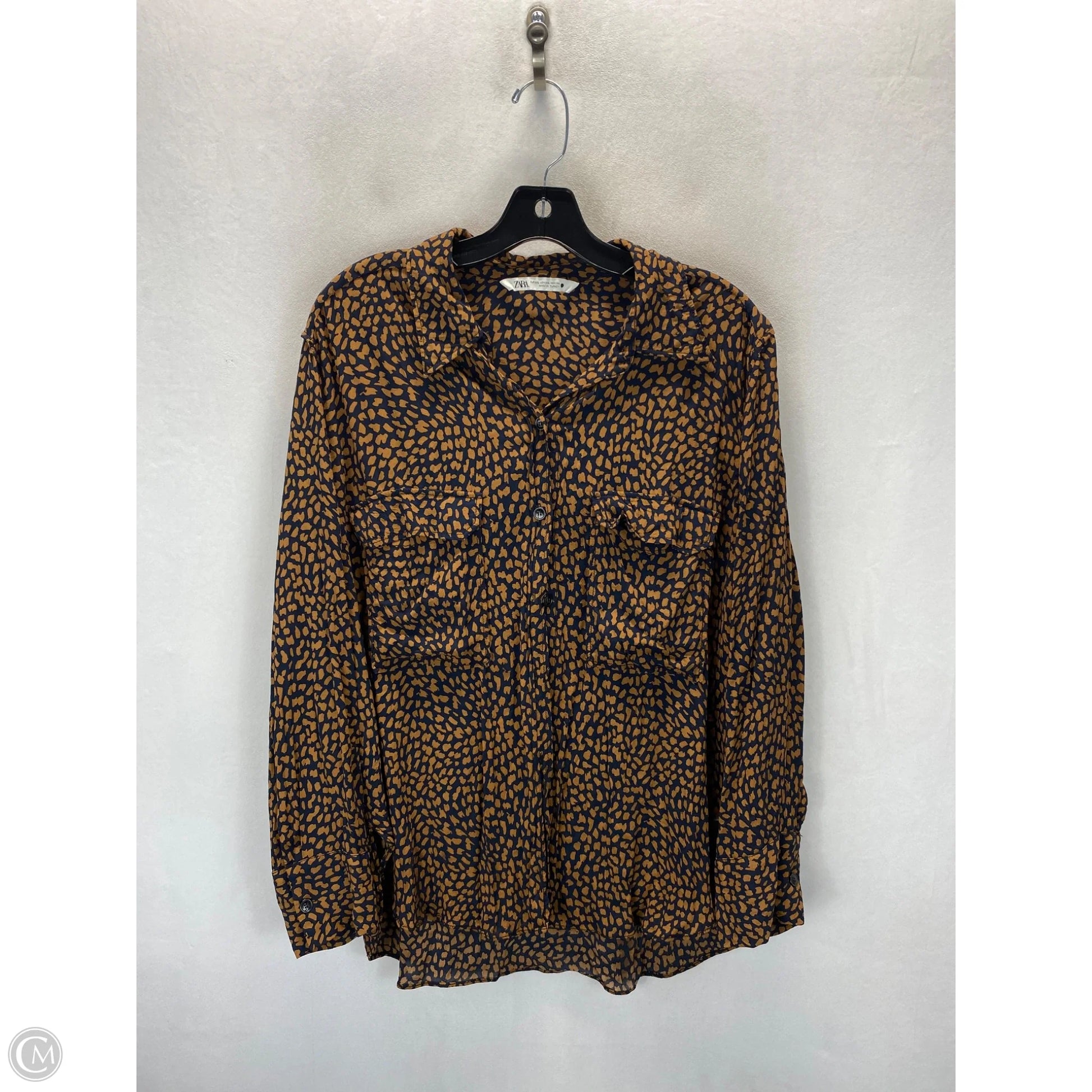 Top Long Sleeve By Zara In Blue & Brown, Size: Xxl